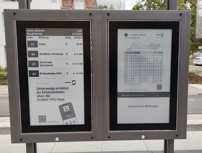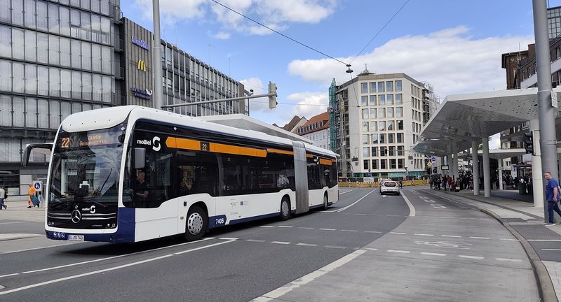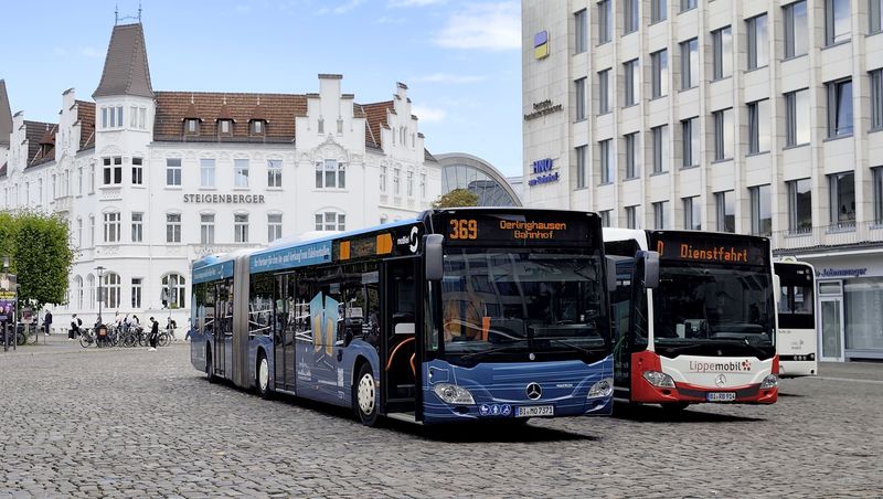 Bielefeld má také rozvinutou autobusovou dopravu pod hlavičkou moBiel a provozovanou buď místním dopravním podnikem nebo subdodavateli. Linky jsou číslovány od 21 výše a spolu tvoří jednotlivé linky svazky se společnou částí trasy i stejnou barvou linky. Většina linek nevede až do centra, ale navazují na Stadtbahn. Linky směřující do centra jedou přes centrální přestupní zastávku Jahnplatz kousek od historického centra i Hlavního nádraží. Tady se také potkávají noční linky číslované od N1 výše, které nahrazují také Stadtbahn. Dopravní podnik moBiel provozuje flotilu o velikosti cca 160...Bielefeld má také rozvinutou autobusovou dopravu pod hlavičkou moBiel a provozovanou buď místním dopravním podnikem nebo subdodavateli. Linky jsou číslovány od 21 výše a spolu tvoří jednotlivé linky svazky se společnou částí trasy i stejnou barvou linky. Většina linek nevede až do centra, ale navazují na Stadtbahn. Linky směřující do centra jedou přes centrální přestupní zastávku Jahnplatz kousek od historického centra i Hlavního nádraží. Tady se také potkávají noční linky číslované od N1 výše, které nahrazují také Stadtbahn. Dopravní podnik moBiel provozuje flotilu o velikosti cca 160 vozidel, v naprosté většině značky Mercedes-Benz. Starší autobusy jsou naftové, novější hybridní a nejnovější vodíkové elektrobusy – aktuálně jich tu mají 29, z toho 17 kloubových + 8 standardních modelů eCitaro a k tomu ještě 4 vodíkové elektrobusy Caetano. Městské autobusy jezdí v modrooranžovobílé barevné kombinaci, a to včetně subdodávek. Regionální autobusy zajíždějící do centra jsou ukončeny u Hlavního nádraží.