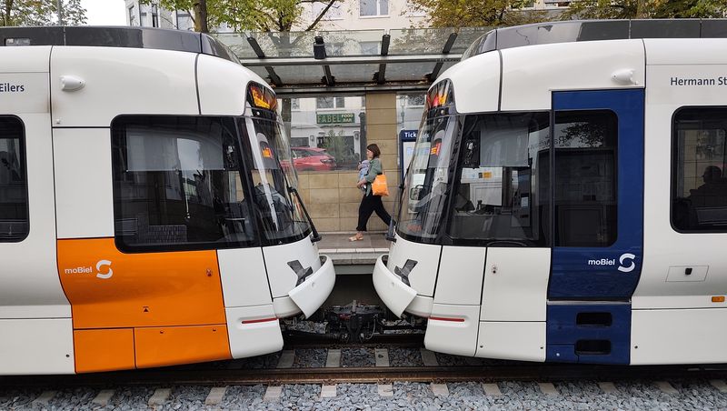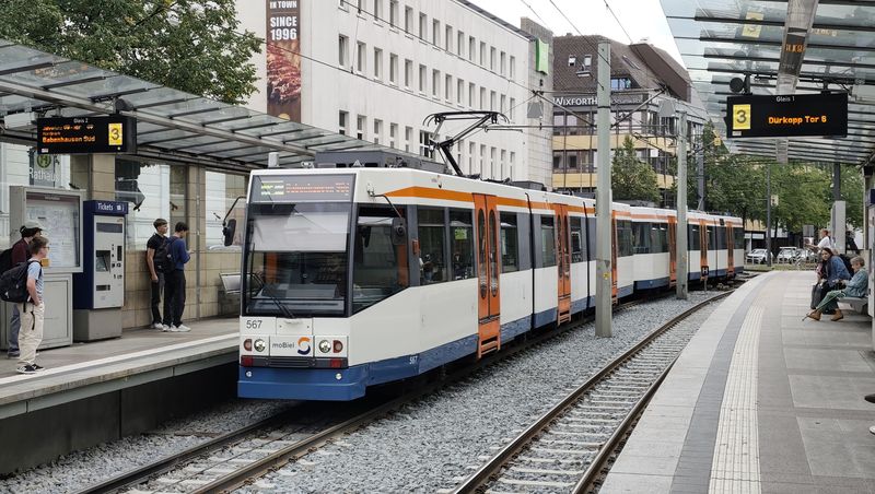Na linkách Stadtbahnu už klasické tramvaje nejezdí dlouho. V roce 2023 se také rozloučili s posledními Düwagy M8C z 80. let. Nyní tu jezdí pouze dva typy vozidel. Starší typ M8D od Siemensu byl dodán v letech 1994-9 v počtu 36 dvoučlánkových vozů, které mohou jezdit jen ve dvojicích, protože řidičské stanoviště je pouze na jedné straně a část konečných nemá klasické obratiště. K nim bylo pořízeno v roce 1999 ještě 5 vložených vozů o délce 14 metrů, které byly původně určeny pro linku 4 k univerzitě, po příchodu nových kapacitnějších vozidel je můžete potkat zejména na lince 1. Nejnovější typ...Na linkách Stadtbahnu už klasické tramvaje nejezdí dlouho. V roce 2023 se také rozloučili s posledními Düwagy M8C z 80. let. Nyní tu jezdí pouze dva typy vozidel. Starší typ M8D od Siemensu byl dodán v letech 1994-9 v počtu 36 dvoučlánkových vozů, které mohou jezdit jen ve dvojicích, protože řidičské stanoviště je pouze na jedné straně a část konečných nemá klasické obratiště. K nim bylo pořízeno v roce 1999 ještě 5 vložených vozů o délce 14 metrů, které byly původně určeny pro linku 4 k univerzitě, po příchodu nových kapacitnějších vozidel je můžete potkat zejména na lince 1. Nejnovější typ Vossloh Vamos přinesl v roce 2011 zcela novou kvalitu – oproti původnímu typu jsou delší (tříčlánkové) a o 30 cm širší (vozidla jsou ve výšce pro cestující vypouklá podobně jako v Hannoveru). V první sérii bylo dodáno 16 vozidel, dalších 24, již bez sklápěcích schodů, přišlo v letech 2021-23. To umožnilo vyřadit poslední Düwagy z 80. let. I nové prodloužené tramvaje jezdí ve dvojicích, jako sólo jen výjimečně. Díky tomu došlo k podstatnému navýšení kapacity na jednotlivých linkách.