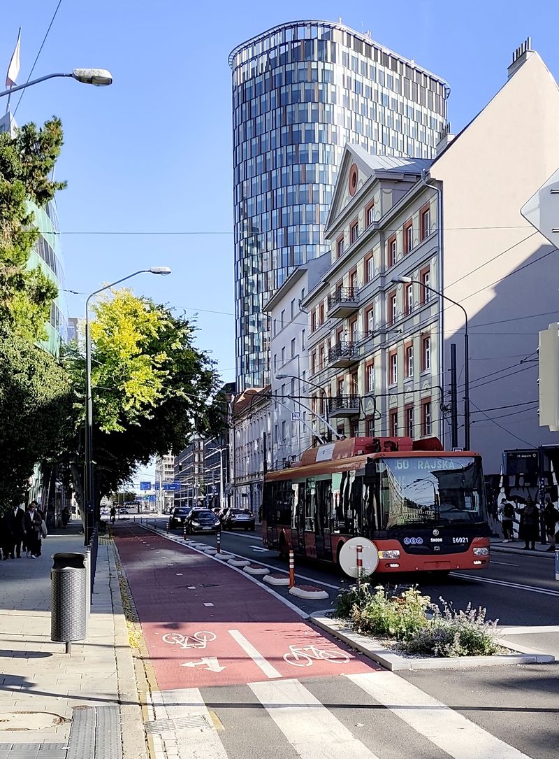 Největší počin ve veřejné dopravě za poslední desetiletí – to je prodloužení tramvajové trati ze severního na jižní okraj sídliště Petržalka. Po 9 letech od zprovoznění první etapy na Petržalku byla trať vedená středem sídliště prodloužena o 4 km a 7 zastávek až na novou konečnou Južné Město. Na ní je jak klasické obratiště, tak odstavné koleje s halou pro deponování tramvají přes noc. Nový úsek se chlubí moderním mobiliářem zastávek, velkorysými úpravami veřejného prostoru okolo trati i novou cyklostezkou. Po nové trati by se v budoucnu mělo jezdit také rychleji. I když zde jezdí pouze linka...Největší počin ve veřejné dopravě za poslední desetiletí – to je prodloužení tramvajové trati ze severního na jižní okraj sídliště Petržalka. Po 9 letech od zprovoznění první etapy na Petržalku byla trať vedená středem sídliště prodloužena o 4 km a 7 zastávek až na novou konečnou Južné Město. Na ní je jak klasické obratiště, tak odstavné koleje s halou pro deponování tramvají přes noc. Nový úsek se chlubí moderním mobiliářem zastávek, velkorysými úpravami veřejného prostoru okolo trati i novou cyklostezkou. Po nové trati by se v budoucnu mělo jezdit také rychleji. I když zde jezdí pouze linka 3, má velmi krátké intervaly – 2,5 minuty v ranní špičce, 4 minuty odpoledne. Ale díky rostoucímu počtu cestujících asi bude potřeba brzy posilovat.