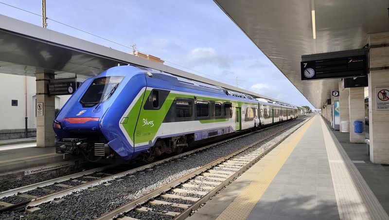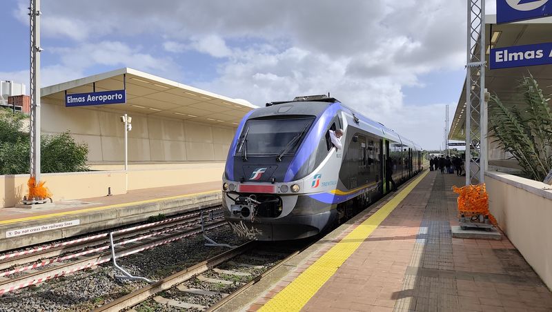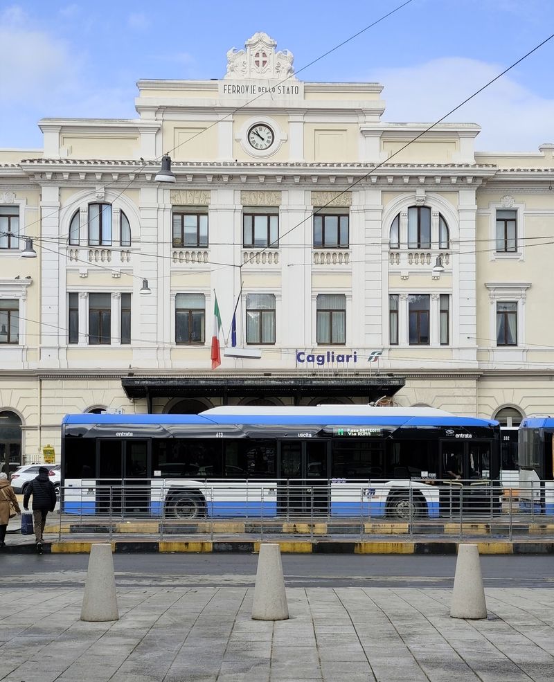 Do centra Cagliari zajíždí také místní regionální železnice propojující jih se severem ostrova. Vlaky na normálním rozchodu provozují italské státní dráhy FS a chystá se elektrifikace páteřní dvoukolejné trasy z Cagliari. Na to už jsou připraveny nové hybridní vlakové jednotky Hitachi, které umí kombinovat elektrický a naftový pohon. Díky souhrnnému intervalu 20 minut se pomocí vlaků dostanete rychle také na místní nedaleké letiště Elmas, u kterého vyrostla v roce 2013 nová zastávka. Hned u vlakového nádraží najdete kromě obratiště linek MHD také autobusové nádraží pro regionální spoje...Do centra Cagliari zajíždí také místní regionální železnice propojující jih se severem ostrova. Vlaky na normálním rozchodu provozují italské státní dráhy FS a chystá se elektrifikace páteřní dvoukolejné trasy z Cagliari. Na to už jsou připraveny nové hybridní vlakové jednotky Hitachi, které umí kombinovat elektrický a naftový pohon. Díky souhrnnému intervalu 20 minut se pomocí vlaků dostanete rychle také na místní nedaleké letiště Elmas, u kterého vyrostla v roce 2013 nová zastávka. Hned u vlakového nádraží najdete kromě obratiště linek MHD také autobusové nádraží pro regionální spoje provozované dopravcem ARST. Ten v poslední době výrazně obnovil svoji flotilu tmavě modrými autobusy značek Iveco a Solaris