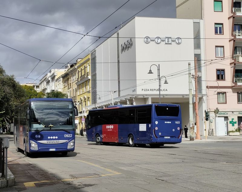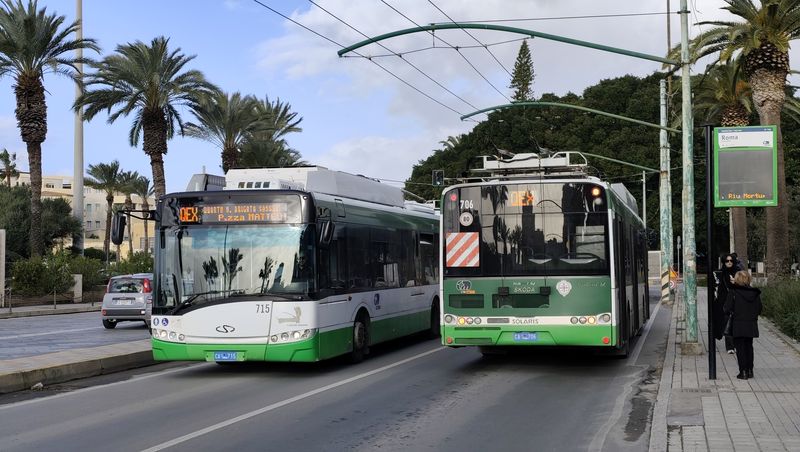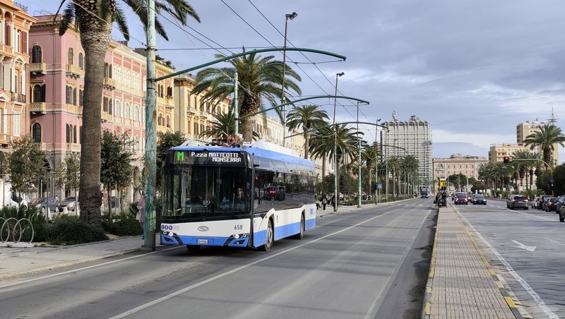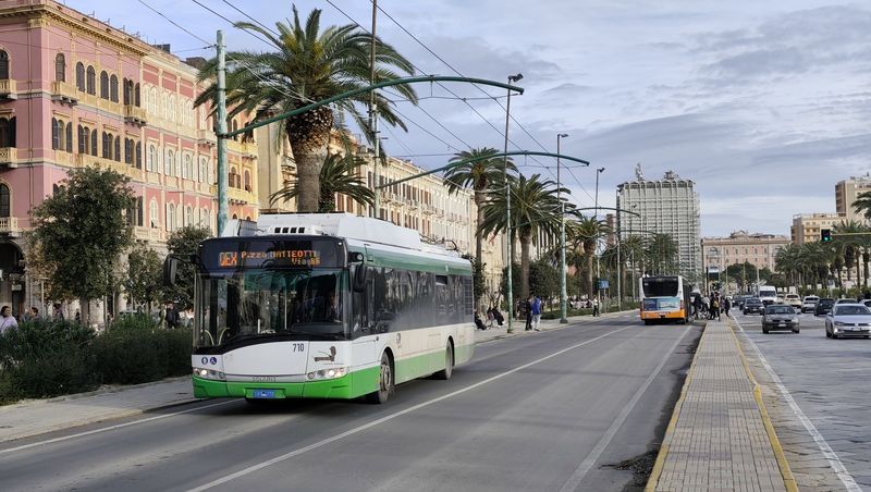 V Cagliari jezdí už od roku 1952 také trolejbusy. Aktuálně by měly jezdit na třech linkách, reálně jsme je ale během návštěvy potkali pouze na jedné. Aktuálně jediná provozní trolejbusová linka má označení QEX (Quartu Express) a pojmenovaná je podle severovýchodního předměstí, kam zajíždí. Souběžně s ní by měly být trolejbusy nasazovány na podobné lince 30, která vede s linkou QEX až do centra Cagliari k místnímu nádraží. Další teoreticky trolejbusovou linkou je číslo 5, které obsluhuje severozápadní a jihovýchodní část Cagliari a s linkami 30 a QEX se potkává v centrálním vyhrazeném koridoru...V Cagliari jezdí už od roku 1952 také trolejbusy. Aktuálně by měly jezdit na třech linkách, reálně jsme je ale během návštěvy potkali pouze na jedné. Aktuálně jediná provozní trolejbusová linka má označení QEX (Quartu Express) a pojmenovaná je podle severovýchodního předměstí, kam zajíždí. Souběžně s ní by měly být trolejbusy nasazovány na podobné lince 30, která vede s linkou QEX až do centra Cagliari k místnímu nádraží. Další teoreticky trolejbusovou linkou je číslo 5, které obsluhuje severozápadní a jihovýchodní část Cagliari a s linkami 30 a QEX se potkává v centrálním vyhrazeném koridoru na pobřežní promenádě Via Roma. Kvůli stavbě prodloužení tramvaje k nádraží je ale trolejové vedení na několika místech přerušeno, což může být důvodem aktuálního útlumu trolejbusů. Nicméně všechny místní vozy dokážou jezdit i bez trolejí.