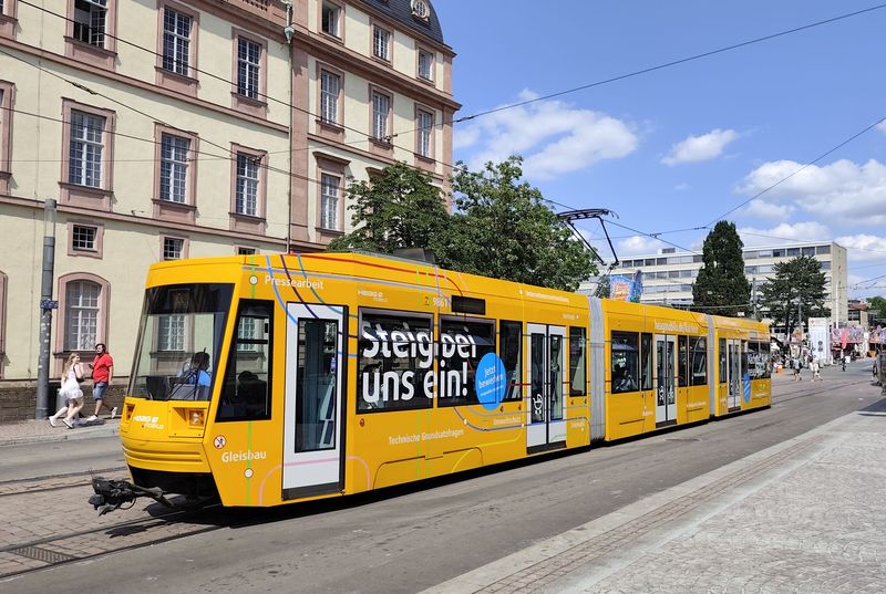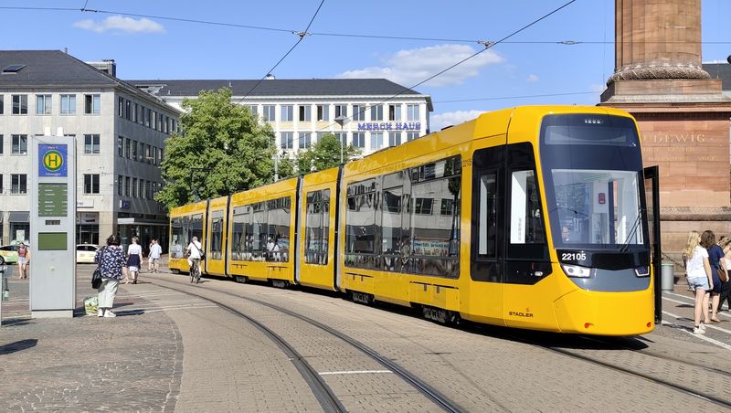 Největší novinkou MHD v Darmstadtu jsou nové pětičlánkové tramvaje Stadler Tina ST15 dlouhé 43 metrů. Původně bylo objednáno 14 tramvají s opcí na dalších 30, zatím jich ale bylo přiobjednáno 11, takže do konce roku 2025 by jich mělo přijít 25. První vozy moderního vzhledu vyjely s cestujícími v roce 2023. Bohužel dodnes je jejich pověst pošramocena problémy s přílišnými vibracemi, které tyto tramvaje přenášejí do okolí a styl se tak terčem kritiky hlavně z řad rezidentů bydlících v těsném okolí tramvajových tratí. Švýcarský výrobce, který nyní dodává stejný typ do německého Halle, však...Největší novinkou MHD v Darmstadtu jsou nové pětičlánkové tramvaje Stadler Tina ST15 dlouhé 43 metrů. Původně bylo objednáno 14 tramvají s opcí na dalších 30, zatím jich ale bylo přiobjednáno 11, takže do konce roku 2025 by jich mělo přijít 25. První vozy moderního vzhledu vyjely s cestujícími v roce 2023. Bohužel dodnes je jejich pověst pošramocena problémy s přílišnými vibracemi, které tyto tramvaje přenášejí do okolí a styl se tak terčem kritiky hlavně z řad rezidentů bydlících v těsném okolí tramvajových tratí. Švýcarský výrobce, který nyní dodává stejný typ do německého Halle, však problémy řeší a nyní testuje upravené podvozky, které by měly nežádoucí efekty zmírňovat. Nové klimatizované tramvaje přinášejí vyšší kapacitu oproti stávajícím tříčlánkovým tramvajím a nahrazují soupravy těchto vozů i s vleky.