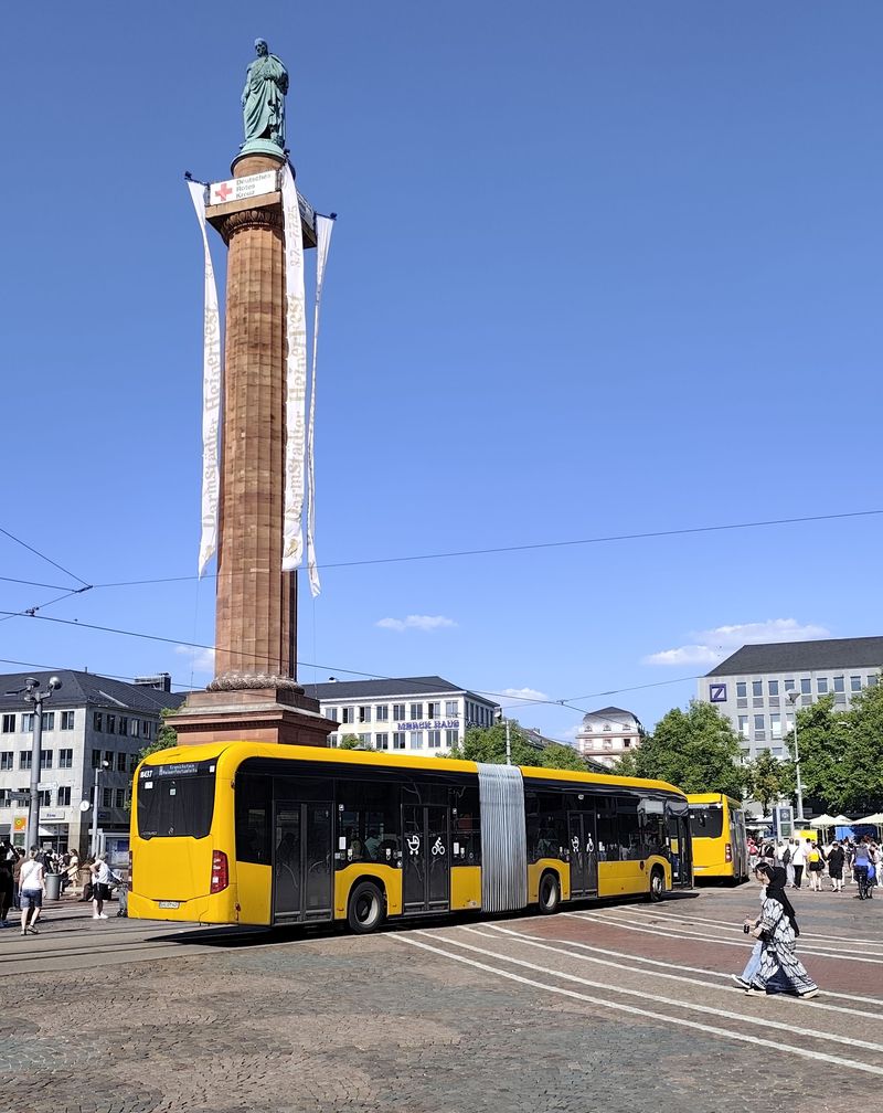 Městské autobusové linky jsou v Darmstadtu označené písmeny a provozuje je městský dopravní podnik HEAG mobilo. Nejstarší vozy jsou staré pouhých 10 let, už tu třeba nepotkáte ani dlouhé kloubové Mercedesy CapaCity z roku 2011. Naopak zde jezdí 47 nových elektrobusů od Mercedesu – 24 eCitar standardní délky a 23 kloubových. A také 9 kloubových elektrobusů MAN. O něco starší jsou kloubové hybridní MANy a flotilu uzavírají nejstarší naftové Mercedesy a MANy. Novinkou v režii místního dopravního podniku jsou kapacitní patrové autobusy Setra pro speciální linku AIR spojující Darmstadt s...Městské autobusové linky jsou v Darmstadtu označené písmeny a provozuje je městský dopravní podnik HEAG mobilo. Nejstarší vozy jsou staré pouhých 10 let, už tu třeba nepotkáte ani dlouhé kloubové Mercedesy CapaCity z roku 2011. Naopak zde jezdí 47 nových elektrobusů od Mercedesu – 24 eCitar standardní délky a 23 kloubových. A také 9 kloubových elektrobusů MAN. O něco starší jsou kloubové hybridní MANy a flotilu uzavírají nejstarší naftové Mercedesy a MANy. Novinkou v režii místního dopravního podniku jsou kapacitní patrové autobusy Setra pro speciální linku AIR spojující Darmstadt s nedalekým letištěm ve Frankfurtu.