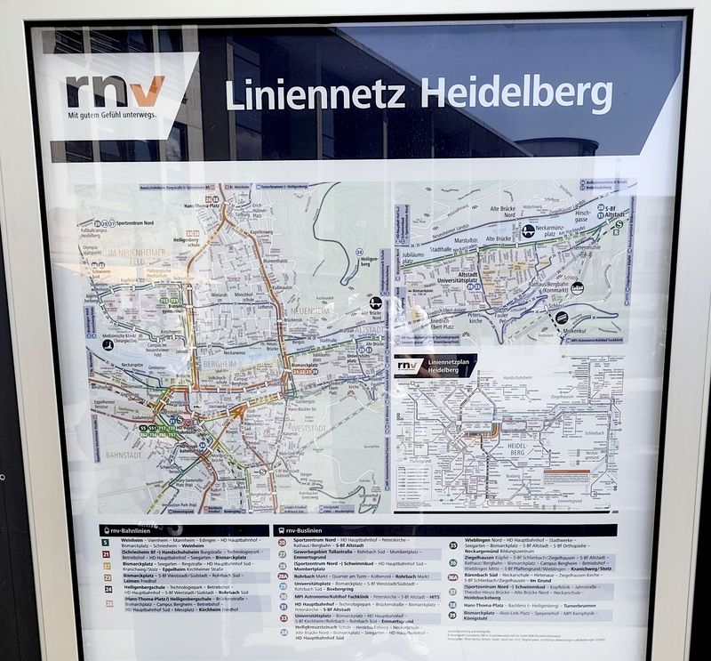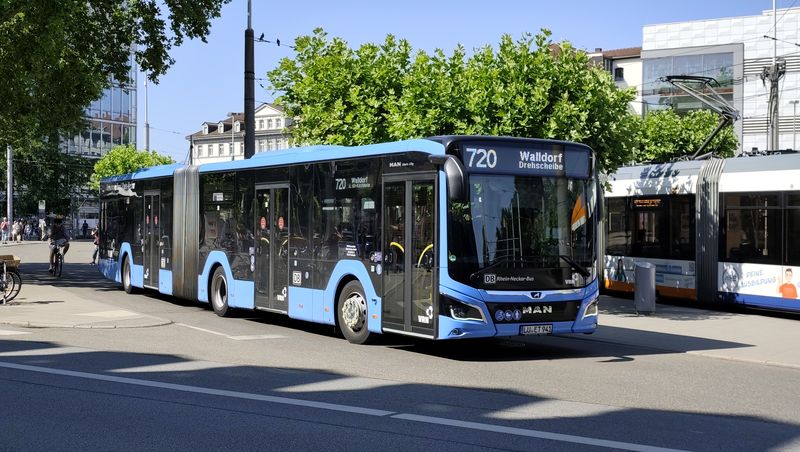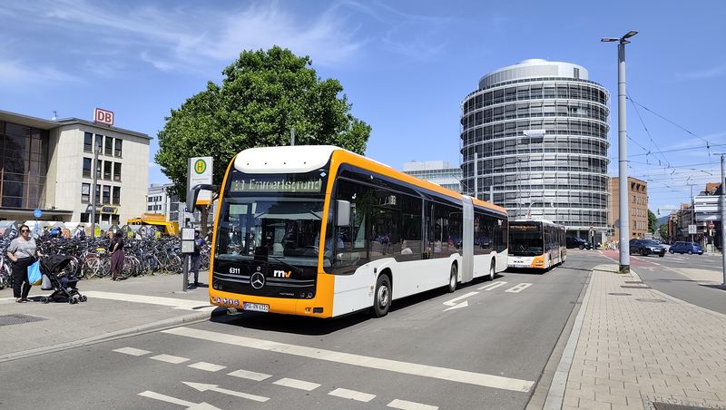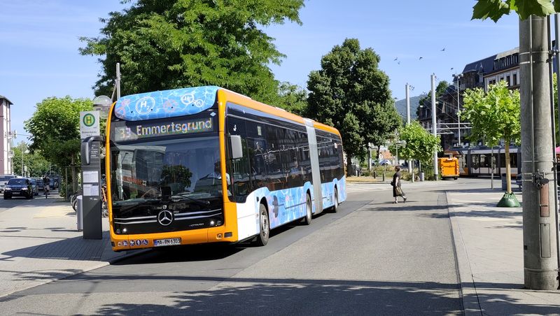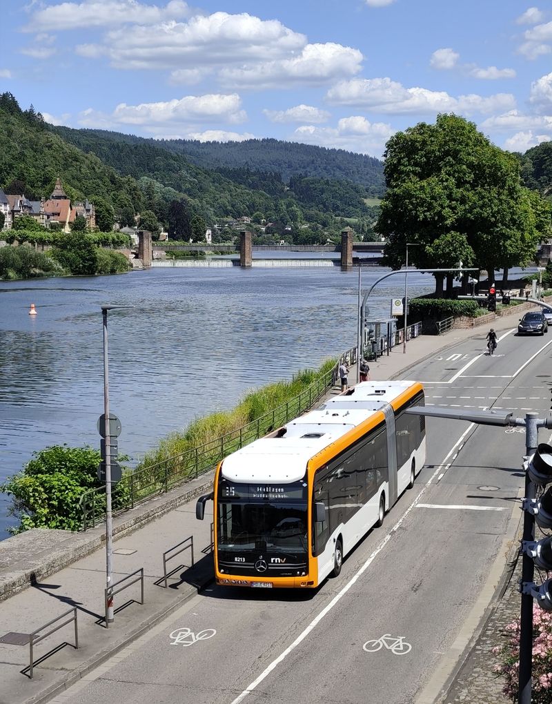 Heidelberg má také rozvinutou městskou autobusovou dopravu provozovanou rovněž RNV. Místní linky číslované od 20 výš (tedy do této řady jsou vnořeny místní tramvajové linky) obsluhují také východní část historického centra, kam tramvajové koleje nevedou. A zajíždějí i přímo do úzkých uliček zdejší turisticky hojně navštěvované oblasti. Část linek se do východní části historického centra dostává také pomocí krátkého tunelu, který podjíždí trať místní pozemní lanovky. Heidelberg má v současnosti ze všech tří propojených měst nejvíce kloubových vodíkových elektrobusů Mercedes-Benz. Celkem jich...Heidelberg má také rozvinutou městskou autobusovou dopravu provozovanou rovněž RNV. Místní linky číslované od 20 výš (tedy do této řady jsou vnořeny místní tramvajové linky) obsluhují také východní část historického centra, kam tramvajové koleje nevedou. A zajíždějí i přímo do úzkých uliček zdejší turisticky hojně navštěvované oblasti. Část linek se do východní části historického centra dostává také pomocí krátkého tunelu, který podjíždí trať místní pozemní lanovky. Heidelberg má v současnosti ze všech tří propojených měst nejvíce kloubových vodíkových elektrobusů Mercedes-Benz. Celkem jich má být pořízeno v brzké době až 75, už nyní ale tyto vozy potkáte na všech hlavních heidelberských linkách v počtu cca 30 kusů. Sekunduje jim také 10 elektrobusů standardní délky od stejného výrobce. Ostatní klasické naftové nebo hybridní autobusy jsou rovněž od Mercedesu.