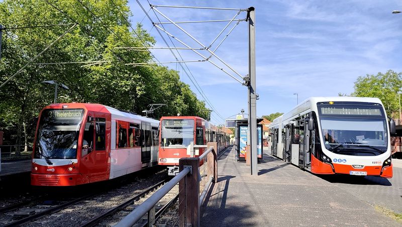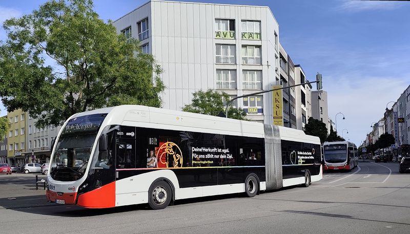 Autobusová doprava v Kolíně nad Rýnem se potupně elektrifikuje. Městský dopravní podnik KVB už od roku 2015 kupuje kloubové elektrobusy VDL, aktuálně jich má už 118, z toho 5 ve standardním provedení. Nyní si objednal dalších 78 elektrobusů, tentokrát od španělského výrobce Irizar. 38 bude kloubových a 40 standardních. Dodány mají být do roku 2026 a pak už bude mít dopravní podnik 2/3 autobusové flotily na elektrický pohon. V regionální dopravě tu mají jeden unikát. A to sice největší flotilu vodíkových autobusů na světě. Pořizuje je už od roku 2020 místní dopravce RVK. Začalo to 38 autobusy...Autobusová doprava v Kolíně nad Rýnem se potupně elektrifikuje. Městský dopravní podnik KVB už od roku 2015 kupuje kloubové elektrobusy VDL, aktuálně jich má už 118, z toho 5 ve standardním provedení. Nyní si objednal dalších 78 elektrobusů, tentokrát od španělského výrobce Irizar. 38 bude kloubových a 40 standardních. Dodány mají být do roku 2026 a pak už bude mít dopravní podnik 2/3 autobusové flotily na elektrický pohon. V regionální dopravě tu mají jeden unikát. A to sice největší flotilu vodíkových autobusů na světě. Pořizuje je už od roku 2020 místní dopravce RVK. Začalo to 38 autobusy Van Hool, následovalo 48 vodíkových Solarisů standardního provedení a dále 18 kloubových vozů od stejné značky. Další vodíkovou značkou RVK bylo 31 autobusů Wright a na konci roku 2025 má tento dopravce už 160 vodíkových autobusů, což dělá téměř polovinu své autobusové flotily.