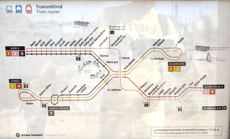 Tramvajová doprava v Tallinu obsluhuje pouze malou část města. I přesto je však významná hlavně pro širší centrum. V poslední době s kromě rekonstrukce všech důležitých tratí podařilo tramvajovou síť rozšířit o důležité dopravní body – letiště na jihovýchodě a osobní přístav v centru. Tramvaj na letiště dojela v roce 2017, nyní je ale ve výluce kvůli stavbě nového vlakového nádraží i nové vysokorychlostní trati poblíž letiště. Nejnovější úsek pro linku 2 o délce 2 km přivedl v roce 2024 tramvaje k osobnímu přístavu východně od centra a propojil rozvojové lokality moderního centra Tallinu. V...Tramvajová doprava v Tallinu obsluhuje pouze malou část města. I přesto je však významná hlavně pro širší centrum. V poslední době s kromě rekonstrukce všech důležitých tratí podařilo tramvajovou síť rozšířit o důležité dopravní body – letiště na jihovýchodě a osobní přístav v centru. Tramvaj na letiště dojela v roce 2017, nyní je ale ve výluce kvůli stavbě nového vlakového nádraží i nové vysokorychlostní trati poblíž letiště. Nejnovější úsek pro linku 2 o délce 2 km přivedl v roce 2024 tramvaje k osobnímu přístavu východně od centra a propojil rozvojové lokality moderního centra Tallinu. V plánu jsou aktuálně dvě další tratě. Jedna na západě jako odbočka ze stávající trati do sídliště Pelguranna a druhá trať jako propojka dvou tramvajových radiál na jihovýchodě středem místního bulváru. Tady se ale ještě vedou diskuze o nutnosti omezit souběžnou automobilovou dopravu.