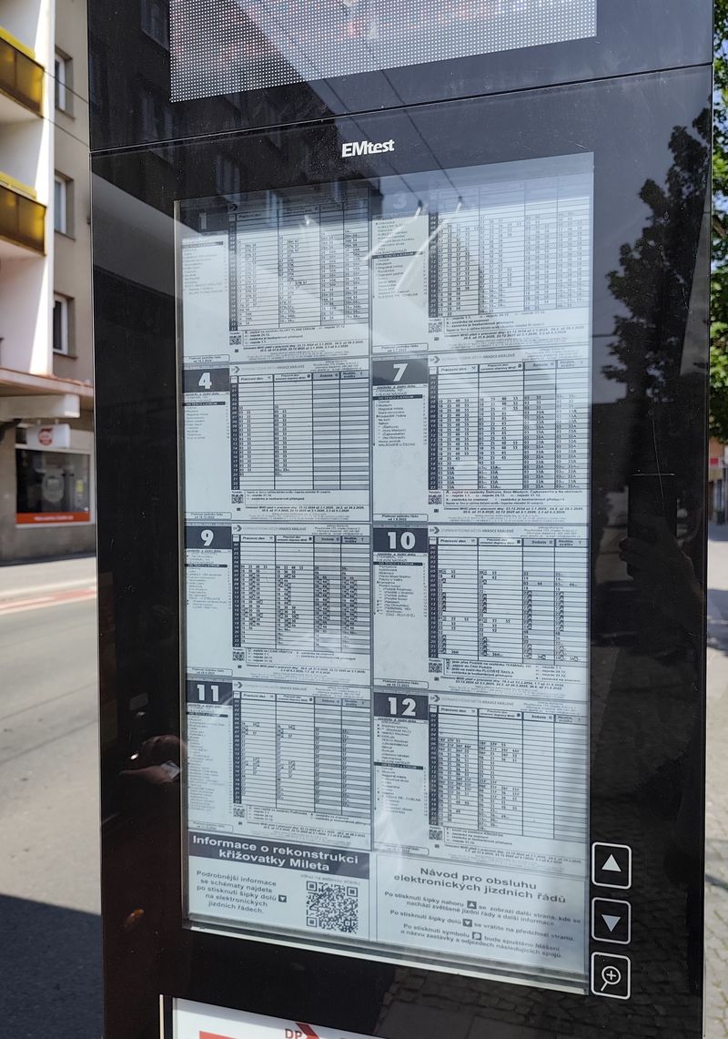 Hradec Králové má od roku 2023 na nejvytíženějších zastávkách celkem 19 chytrých elektronických označníků, které jednak ukazují aktuální odjezdy pomocí LED displeje a také mají další digitální plochy formou e-papíru, kde si můžete tlačítkem přepnout mezi jednotlivými jízdními řády, aktuálními změnami či tarifem. Během poslední doby se linky MHD potýkaly s většími výlukami například kvůli rekonstrukci křižovatky poblíž zastávky Zimní stadion a v roce 2025 kvůli rekonstrukci vytížené křižovatky Mileta jižně od centra. Mimo tyto dočasné akce je ale linkové vedení stabilní a pouze v roce 2022...Hradec Králové má od roku 2023 na nejvytíženějších zastávkách celkem 19 chytrých elektronických označníků, které jednak ukazují aktuální odjezdy pomocí LED displeje a také mají další digitální plochy formou e-papíru, kde si můžete tlačítkem přepnout mezi jednotlivými jízdními řády, aktuálními změnami či tarifem. Během poslední doby se linky MHD potýkaly s většími výlukami například kvůli rekonstrukci křižovatky poblíž zastávky Zimní stadion a v roce 2025 kvůli rekonstrukci vytížené křižovatky Mileta jižně od centra. Mimo tyto dočasné akce je ale linkové vedení stabilní a pouze v roce 2022 došlo ke zpravidelnění intervalů na některých linkách.