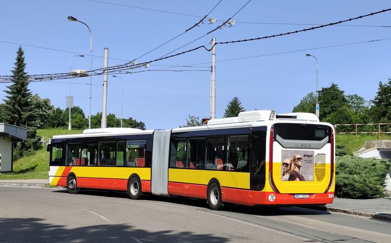 Oproti trolejbusům se ale za posledních 5 let výrazně proměnil vozový park hradeckého DP. Za tuto dobu zde přibylo úctyhodných 43 nových autobusů. Nejprve byla v roce 2020 dokončena dodávka standardních vozů Iveco Urbanway, kterých tu jezdí 24 (11 bylo pořízeno následně v roce 2024). V roce 2023 následoval typ SOR NS v destikusové sérii (z toho 4 kloubové) a naposledy dorazilo do Hradce během začátku roku 2025 12 hybridních kloubových Urbanwayů z celkové objednávky 20 kusů. Tyto vozy již mají upravený vzhled čelní masky a nový bezpečnostní systém ADAS. Díky takto radikální obnově byla...Oproti trolejbusům se ale za posledních 5 let výrazně proměnil vozový park hradeckého DP. Za tuto dobu zde přibylo úctyhodných 43 nových autobusů. Nejprve byla v roce 2020 dokončena dodávka standardních vozů Iveco Urbanway, kterých tu jezdí 24 (11 bylo pořízeno následně v roce 2024). V roce 2023 následoval typ SOR NS v destikusové sérii (z toho 4 kloubové) a naposledy dorazilo do Hradce během začátku roku 2025 12 hybridních kloubových Urbanwayů z celkové objednávky 20 kusů. Tyto vozy již mají upravený vzhled čelní masky a nový bezpečnostní systém ADAS. Díky takto radikální obnově byla vyřazena většina starších Citelisů – aktuálně zbývají už jen 4 standardní vozy z roku 2009 a 7 kloubových z let 2009-14.