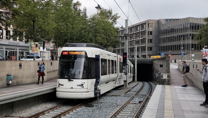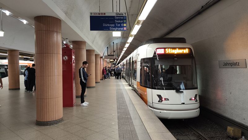 Stadtbahn v Bielefeldu funguje v dnešní podobě teprve do roku 1991, i když jeho základ v podobě první podzemní stanice vznikl již o 20 let dříve. Vybudovat nové tunely pod centrem po vzoru jiných německých měst ale trvalo nezvykle dlouho. Dnes na síti 4 linek najdete 7 podzemních stanic v centru města se dvěma stanicemi společnými pro všechny linky – Hlavní nádraží a Jahnplatz. Stadtbahn tu jezdí na metrovém rozchodu a používá vysokopodlažní vozidla a k nim stanice s vysokými nástupišti. Postupná náhrada starých tramvají novým Stadtbahnem si vyžádala nové vozy se sklápěcími schody, ty...Stadtbahn v Bielefeldu funguje v dnešní podobě teprve do roku 1991, i když jeho základ v podobě první podzemní stanice vznikl již o 20 let dříve. Vybudovat nové tunely pod centrem po vzoru jiných německých měst ale trvalo nezvykle dlouho. Dnes na síti 4 linek najdete 7 podzemních stanic v centru města se dvěma stanicemi společnými pro všechny linky – Hlavní nádraží a Jahnplatz. Stadtbahn tu jezdí na metrovém rozchodu a používá vysokopodlažní vozidla a k nim stanice s vysokými nástupišti. Postupná náhrada starých tramvají novým Stadtbahnem si vyžádala nové vozy se sklápěcími schody, ty nejnovější už je ale nemají – postupně se totiž všechny zastávky přestavují na vysoká nástupiště. Pár zastávek ale ještě zbývá.