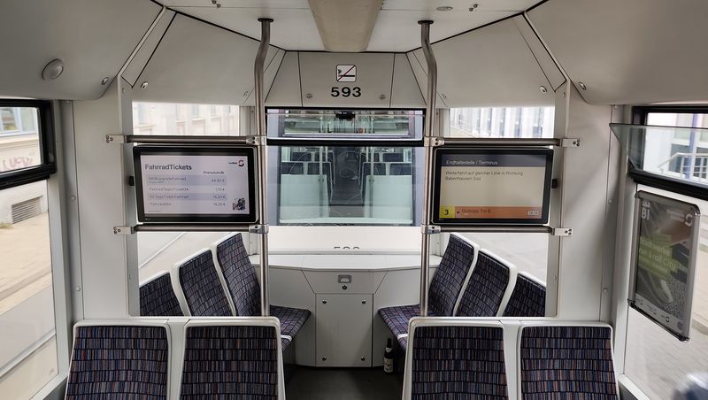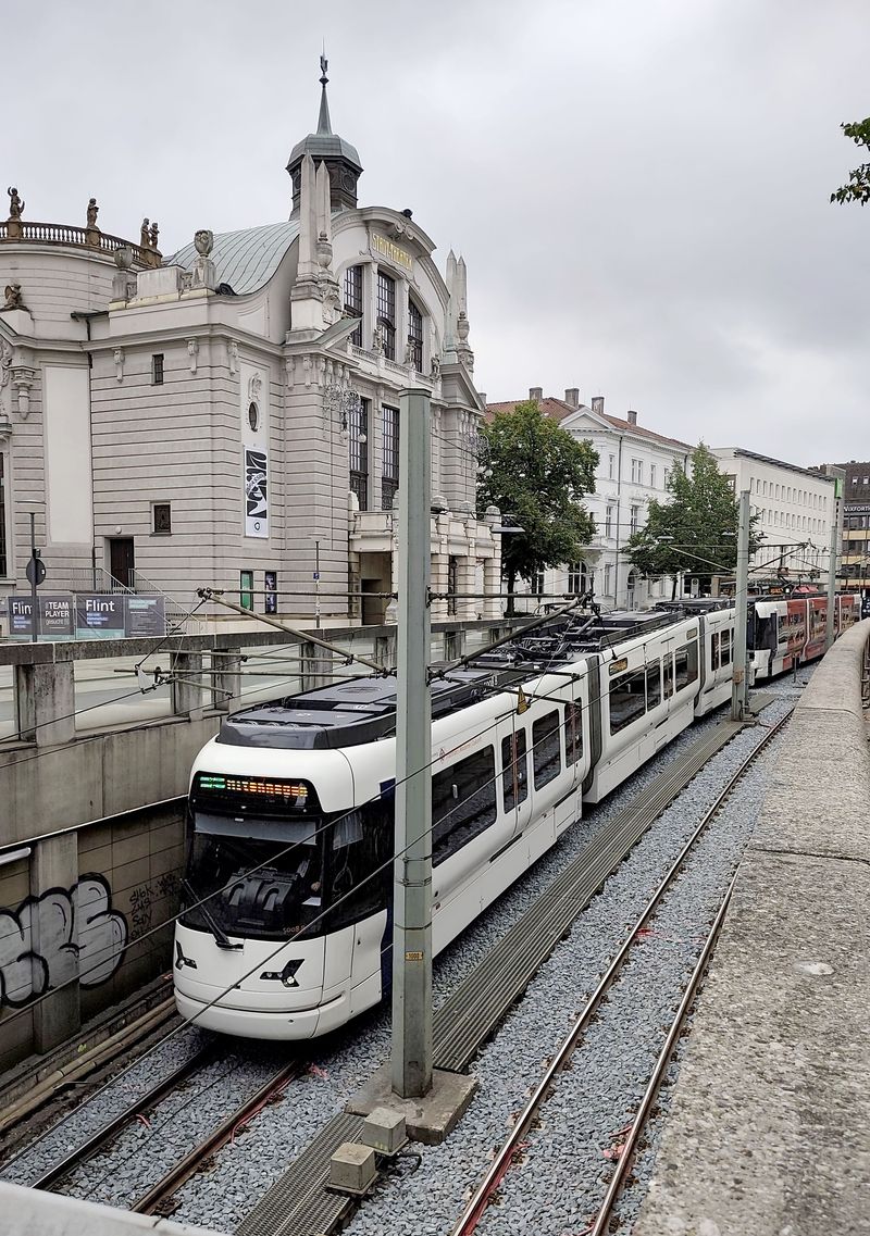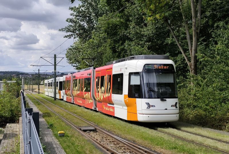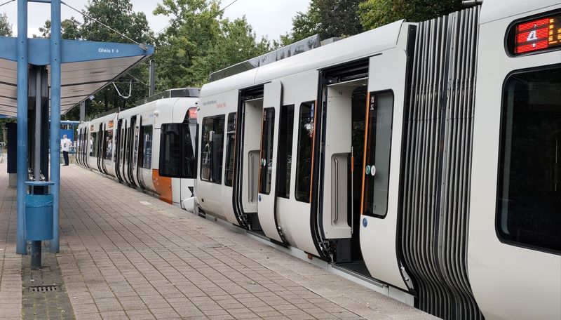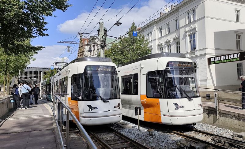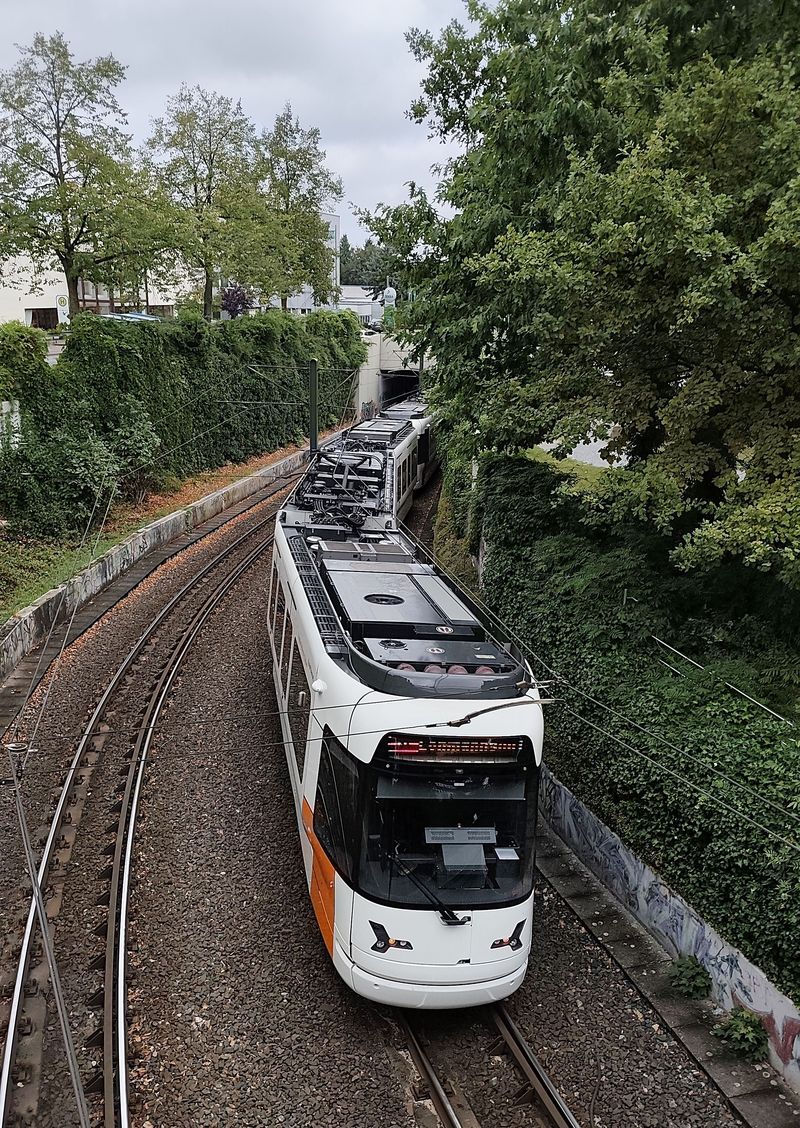 Na linkách Stadtbahnu už klasické tramvaje nejezdí dlouho. V roce 2023 se také rozloučili s posledními Düwagy M8C z 80. let. Nyní tu jezdí pouze dva typy vozidel. Starší typ M8D od Siemensu byl dodán v letech 1994-9 v počtu 36 dvoučlánkových vozů, které mohou jezdit jen ve dvojicích, protože řidičské stanoviště je pouze na jedné straně a část konečných nemá klasické obratiště. K nim bylo pořízeno v roce 1999 ještě 5 vložených vozů o délce 14 metrů, které byly původně určeny pro linku 4 k univerzitě, po příchodu nových kapacitnějších vozidel je můžete potkat zejména na lince 1. Nejnovější typ...Na linkách Stadtbahnu už klasické tramvaje nejezdí dlouho. V roce 2023 se také rozloučili s posledními Düwagy M8C z 80. let. Nyní tu jezdí pouze dva typy vozidel. Starší typ M8D od Siemensu byl dodán v letech 1994-9 v počtu 36 dvoučlánkových vozů, které mohou jezdit jen ve dvojicích, protože řidičské stanoviště je pouze na jedné straně a část konečných nemá klasické obratiště. K nim bylo pořízeno v roce 1999 ještě 5 vložených vozů o délce 14 metrů, které byly původně určeny pro linku 4 k univerzitě, po příchodu nových kapacitnějších vozidel je můžete potkat zejména na lince 1. Nejnovější typ Vossloh Vamos přinesl v roce 2011 zcela novou kvalitu – oproti původnímu typu jsou delší (tříčlánkové) a o 30 cm širší (vozidla jsou ve výšce pro cestující vypouklá podobně jako v Hannoveru). V první sérii bylo dodáno 16 vozidel, dalších 24, již bez sklápěcích schodů, přišlo v letech 2021-23. To umožnilo vyřadit poslední Düwagy z 80. let. I nové prodloužené tramvaje jezdí ve dvojicích, jako sólo jen výjimečně. Díky tomu došlo k podstatnému navýšení kapacity na jednotlivých linkách.
