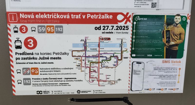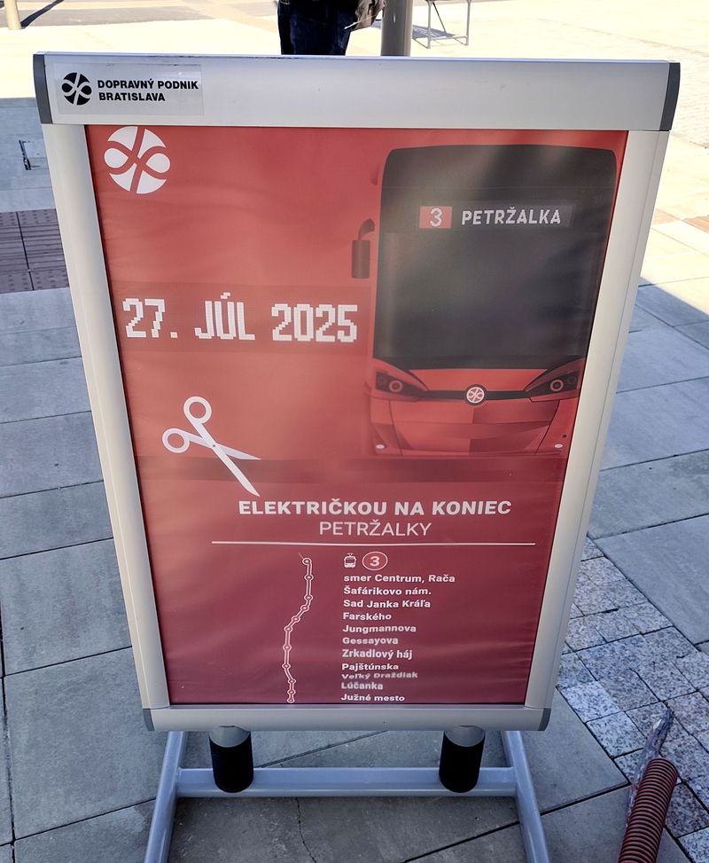 S otevřením nové tramvajové trati v červenci 2025 přišlo i několik změn linkového vedení. Zrušena byla posilová tramvajová linka 7, kterou nahradil zkrácený interval páteří linky 3. Zrušena byla také napaječová autobusová linka 95 částečně kopírující novou trať a minulostí je také špičková linka 59 z Petržalky přes centrum na severovýchod města. Po dokončení celé tramvajové stavby bude také lepší přestup z autobusů od Rusovců díky nové zastávce na mostě nad konečnou zastávkou Južné Mesto. Bratislava má už 90 nových nízkopodlažních tramvají a nyní pořizuje další 10 jednosměrných vozů Škoda...S otevřením nové tramvajové trati v červenci 2025 přišlo i několik změn linkového vedení. Zrušena byla posilová tramvajová linka 7, kterou nahradil zkrácený interval páteří linky 3. Zrušena byla také napaječová autobusová linka 95 částečně kopírující novou trať a minulostí je také špičková linka 59 z Petržalky přes centrum na severovýchod města. Po dokončení celé tramvajové stavby bude také lepší přestup z autobusů od Rusovců díky nové zastávce na mostě nad konečnou zastávkou Južné Mesto. Bratislava má už 90 nových nízkopodlažních tramvají a nyní pořizuje další 10 jednosměrných vozů Škoda 29T. Pro další roky se počítá s nákupem dalších až 20 obousměrných tramvají a město plánuje pořídit také velkokapacitní tramvaje, zatím je ale nevysoutěžilo. Nyní se chystá modernizace Vajnorské radiály na konečnou Zlaté Piesky.