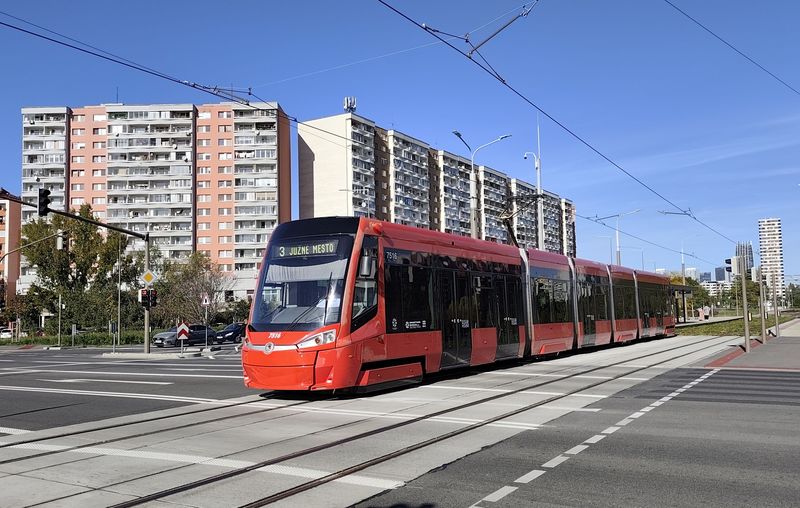 Největší počin ve veřejné dopravě za poslední desetiletí – to je prodloužení tramvajové trati ze severního na jižní okraj sídliště Petržalka. Po 9 letech od zprovoznění první etapy na Petržalku byla trať vedená středem sídliště prodloužena o 4 km a 7 zastávek až na novou konečnou Južné Město. Na ní je jak klasické obratiště, tak odstavné koleje s halou pro deponování tramvají přes noc. Nový úsek se chlubí moderním mobiliářem zastávek, velkorysými úpravami veřejného prostoru okolo trati i novou cyklostezkou. Po nové trati by se v budoucnu mělo jezdit také rychleji. I když zde jezdí pouze linka...Největší počin ve veřejné dopravě za poslední desetiletí – to je prodloužení tramvajové trati ze severního na jižní okraj sídliště Petržalka. Po 9 letech od zprovoznění první etapy na Petržalku byla trať vedená středem sídliště prodloužena o 4 km a 7 zastávek až na novou konečnou Južné Město. Na ní je jak klasické obratiště, tak odstavné koleje s halou pro deponování tramvají přes noc. Nový úsek se chlubí moderním mobiliářem zastávek, velkorysými úpravami veřejného prostoru okolo trati i novou cyklostezkou. Po nové trati by se v budoucnu mělo jezdit také rychleji. I když zde jezdí pouze linka 3, má velmi krátké intervaly – 2,5 minuty v ranní špičce, 4 minuty odpoledne. Ale díky rostoucímu počtu cestujících asi bude potřeba brzy posilovat.