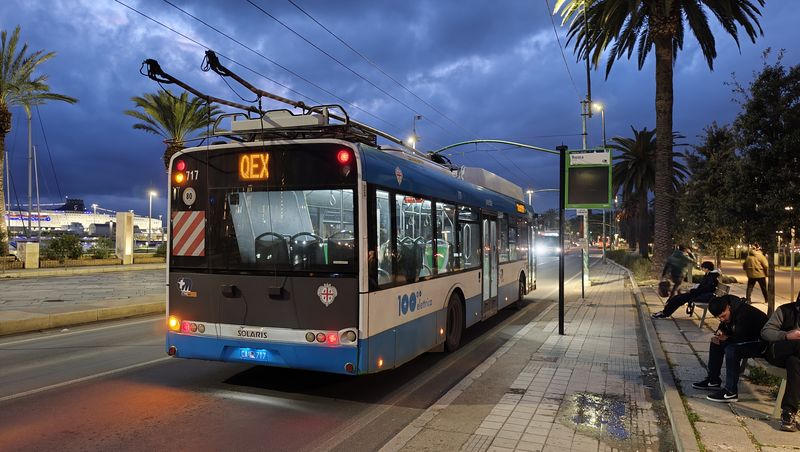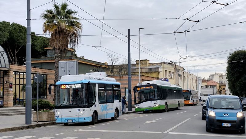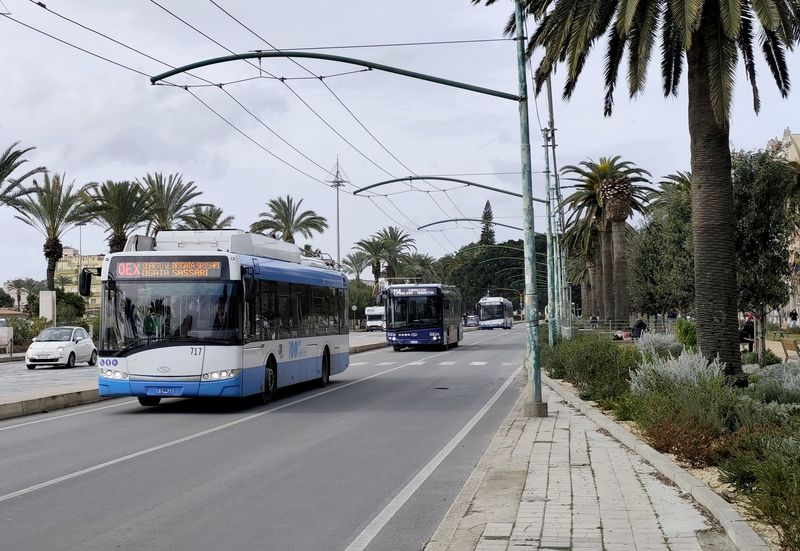 V Cagliari jezdí už od roku 1952 také trolejbusy. Aktuálně by měly jezdit na třech linkách, reálně jsme je ale během návštěvy potkali pouze na jedné. Aktuálně jediná provozní trolejbusová linka má označení QEX (Quartu Express) a pojmenovaná je podle severovýchodního předměstí, kam zajíždí. Souběžně s ní by měly být trolejbusy nasazovány na podobné lince 30, která vede s linkou QEX až do centra Cagliari k místnímu nádraží. Další teoreticky trolejbusovou linkou je číslo 5, které obsluhuje severozápadní a jihovýchodní část Cagliari a s linkami 30 a QEX se potkává v centrálním vyhrazeném koridoru...V Cagliari jezdí už od roku 1952 také trolejbusy. Aktuálně by měly jezdit na třech linkách, reálně jsme je ale během návštěvy potkali pouze na jedné. Aktuálně jediná provozní trolejbusová linka má označení QEX (Quartu Express) a pojmenovaná je podle severovýchodního předměstí, kam zajíždí. Souběžně s ní by měly být trolejbusy nasazovány na podobné lince 30, která vede s linkou QEX až do centra Cagliari k místnímu nádraží. Další teoreticky trolejbusovou linkou je číslo 5, které obsluhuje severozápadní a jihovýchodní část Cagliari a s linkami 30 a QEX se potkává v centrálním vyhrazeném koridoru na pobřežní promenádě Via Roma. Kvůli stavbě prodloužení tramvaje k nádraží je ale trolejové vedení na několika místech přerušeno, což může být důvodem aktuálního útlumu trolejbusů. Nicméně všechny místní vozy dokážou jezdit i bez trolejí.