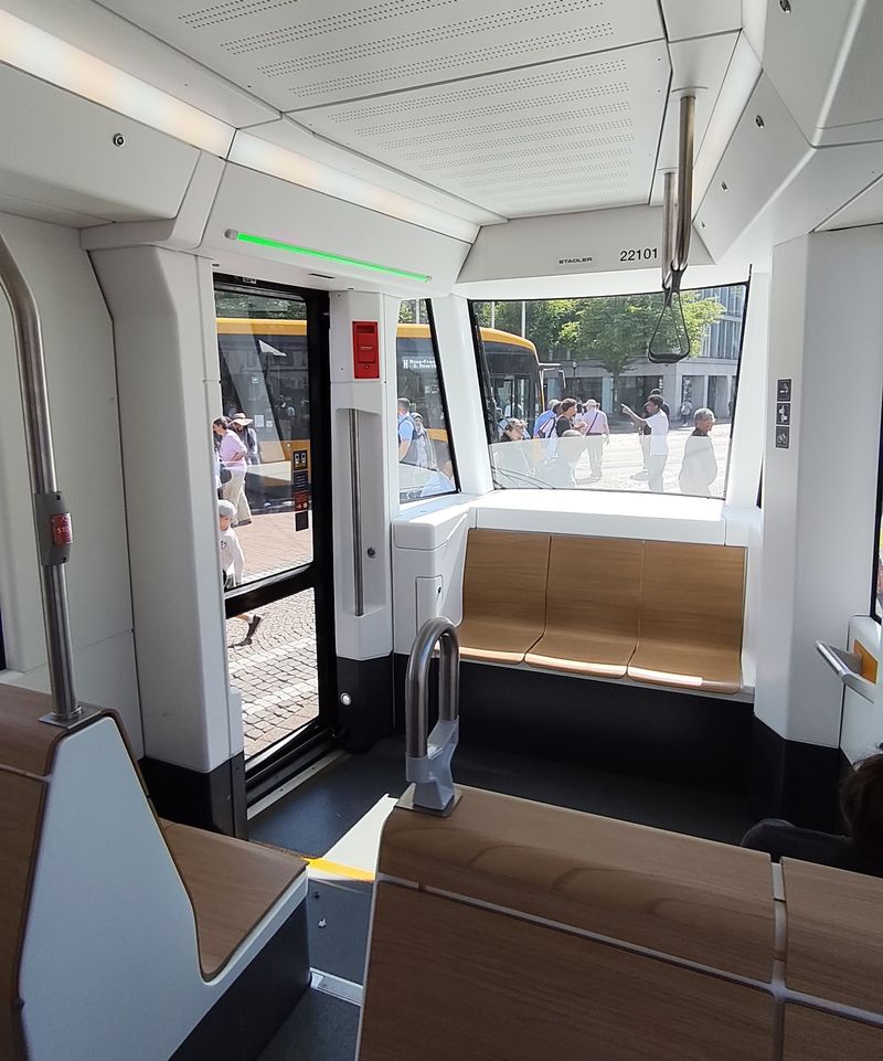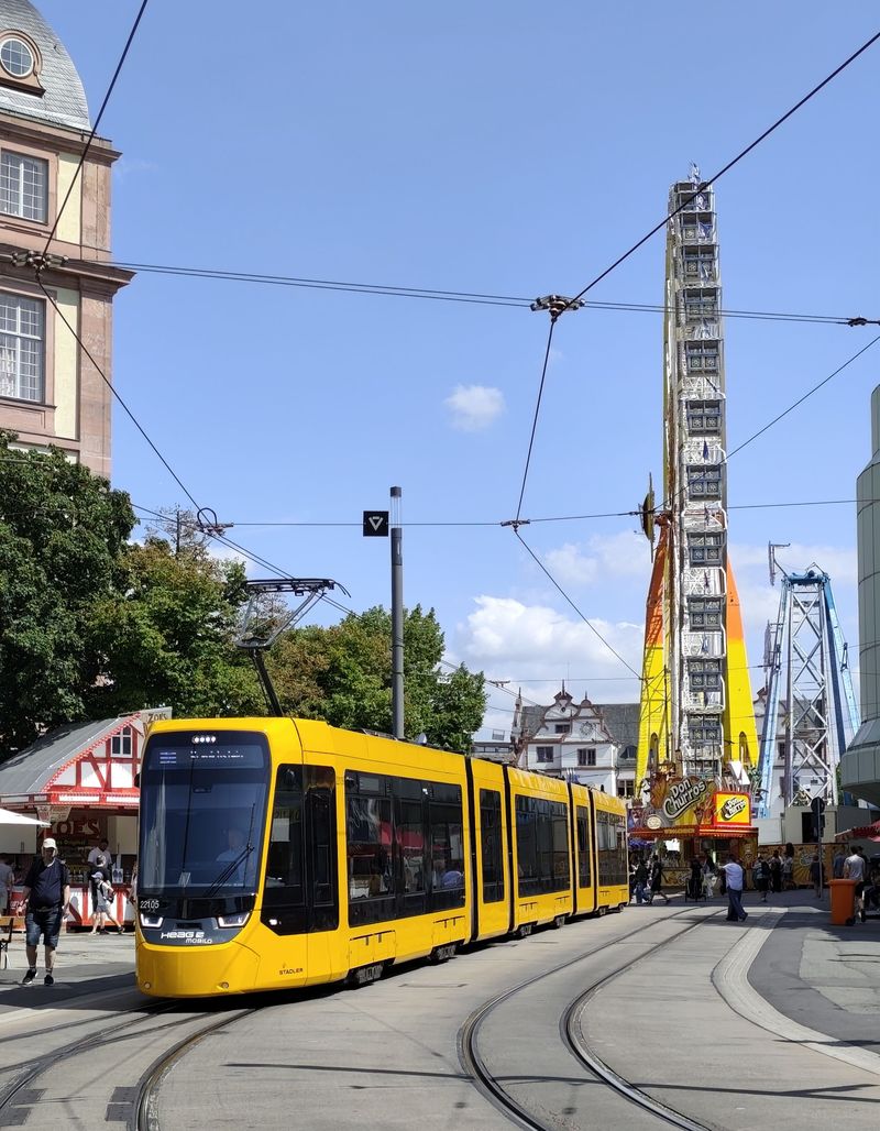 Největší novinkou MHD v Darmstadtu jsou nové pětičlánkové tramvaje Stadler Tina ST15 dlouhé 43 metrů. Původně bylo objednáno 14 tramvají s opcí na dalších 30, zatím jich ale bylo přiobjednáno 11, takže do konce roku 2025 by jich mělo přijít 25. První vozy moderního vzhledu vyjely s cestujícími v roce 2023. Bohužel dodnes je jejich pověst pošramocena problémy s přílišnými vibracemi, které tyto tramvaje přenášejí do okolí a styl se tak terčem kritiky hlavně z řad rezidentů bydlících v těsném okolí tramvajových tratí. Švýcarský výrobce, který nyní dodává stejný typ do německého Halle, však...Největší novinkou MHD v Darmstadtu jsou nové pětičlánkové tramvaje Stadler Tina ST15 dlouhé 43 metrů. Původně bylo objednáno 14 tramvají s opcí na dalších 30, zatím jich ale bylo přiobjednáno 11, takže do konce roku 2025 by jich mělo přijít 25. První vozy moderního vzhledu vyjely s cestujícími v roce 2023. Bohužel dodnes je jejich pověst pošramocena problémy s přílišnými vibracemi, které tyto tramvaje přenášejí do okolí a styl se tak terčem kritiky hlavně z řad rezidentů bydlících v těsném okolí tramvajových tratí. Švýcarský výrobce, který nyní dodává stejný typ do německého Halle, však problémy řeší a nyní testuje upravené podvozky, které by měly nežádoucí efekty zmírňovat. Nové klimatizované tramvaje přinášejí vyšší kapacitu oproti stávajícím tříčlánkovým tramvajím a nahrazují soupravy těchto vozů i s vleky.