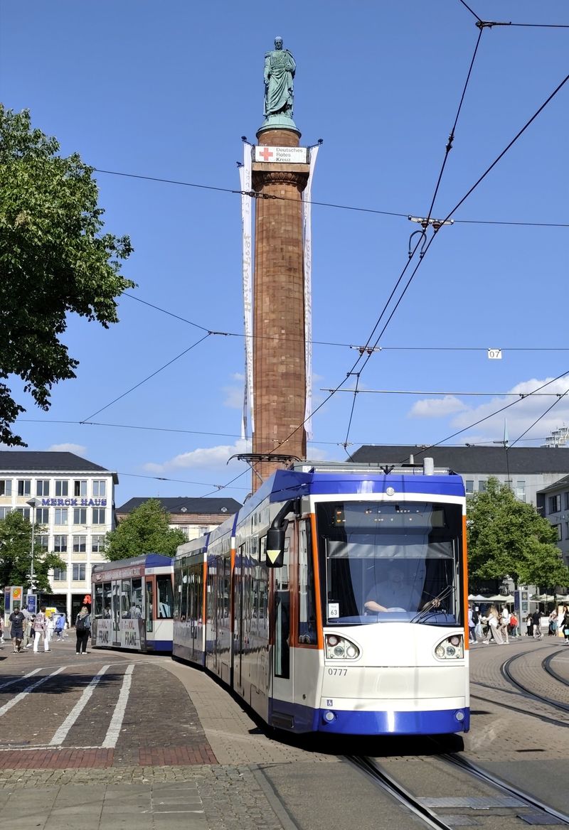 Tramvajová doprava v Darmstadtu je na velikost města poměrně rozsáhlá. Její síť na metrovém rozchodu má 42 km, a to hlavně díky dlouhé příměstské trati na jih do měst Eberstadt a Seeheim. Nejnovějším přírůstkem je kilometrový úsek k univerzitnímu kampusu východně od centra. Ten byl otevřen v roce 2022. Tato trať má zajímavě řešenou smyčku s použitím pestré okrasné květeny. Nicméně jezdí se sem z logických důvodů jen ve všední dny. Druhá nejnovější trať do čtvrti Arheilgen na severu města funguje od roku 2011.Tramvajová doprava v Darmstadtu je na velikost města poměrně rozsáhlá. Její síť na metrovém rozchodu má 42 km, a to hlavně díky dlouhé příměstské trati na jih do měst Eberstadt a Seeheim. Nejnovějším přírůstkem je kilometrový úsek k univerzitnímu kampusu východně od centra. Ten byl otevřen v roce 2022. Tato trať má zajímavě řešenou smyčku s použitím pestré okrasné květeny. Nicméně jezdí se sem z logických důvodů jen ve všední dny. Druhá nejnovější trať do čtvrti Arheilgen na severu města funguje od roku 2011.