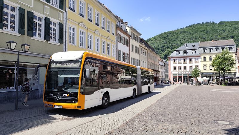 Heidelberg má také rozvinutou městskou autobusovou dopravu provozovanou rovněž RNV. Místní linky číslované od 20 výš (tedy do této řady jsou vnořeny místní tramvajové linky) obsluhují také východní část historického centra, kam tramvajové koleje nevedou. A zajíždějí i přímo do úzkých uliček zdejší turisticky hojně navštěvované oblasti. Část linek se do východní části historického centra dostává také pomocí krátkého tunelu, který podjíždí trať místní pozemní lanovky. Heidelberg má v současnosti ze všech tří propojených měst nejvíce kloubových vodíkových elektrobusů Mercedes-Benz. Celkem jich...Heidelberg má také rozvinutou městskou autobusovou dopravu provozovanou rovněž RNV. Místní linky číslované od 20 výš (tedy do této řady jsou vnořeny místní tramvajové linky) obsluhují také východní část historického centra, kam tramvajové koleje nevedou. A zajíždějí i přímo do úzkých uliček zdejší turisticky hojně navštěvované oblasti. Část linek se do východní části historického centra dostává také pomocí krátkého tunelu, který podjíždí trať místní pozemní lanovky. Heidelberg má v současnosti ze všech tří propojených měst nejvíce kloubových vodíkových elektrobusů Mercedes-Benz. Celkem jich má být pořízeno v brzké době až 75, už nyní ale tyto vozy potkáte na všech hlavních heidelberských linkách v počtu cca 30 kusů. Sekunduje jim také 10 elektrobusů standardní délky od stejného výrobce. Ostatní klasické naftové nebo hybridní autobusy jsou rovněž od Mercedesu.