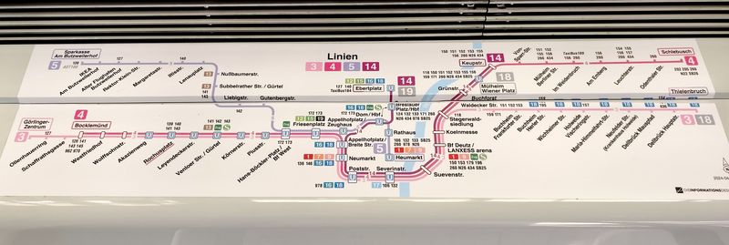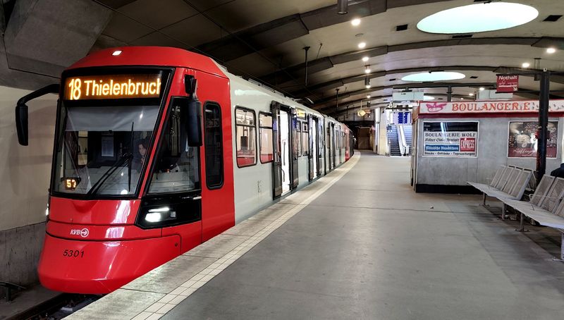Stadtbahn v Kolíně je značený písmenem U, což značí podpovrchové vedení hlavně v centru města. Tunely ale najdete i na některých okrajových úsecích a také v pravobřežní části Kolína pod čtvrtí Deutz. Část linek používá vysokopodlažní vozidla, část nízkopodlažní. A pro oba typy se nyní chystá velká obnova vozového parku. V poslední době bylo pro vysokopodlažní linky pořízeno 30 dvouvozových tramvají typu Bombardier Flexity HF6, které nahradily nejstarší Düwagy typu B80D ze 70. let s předsuvnými dveřmi. Tyto nové tramvaje spřahované výhradně do dvojic potkáte nejčastěji na lince 4.Stadtbahn v Kolíně je značený písmenem U, což značí podpovrchové vedení hlavně v centru města. Tunely ale najdete i na některých okrajových úsecích a také v pravobřežní části Kolína pod čtvrtí Deutz. Část linek používá vysokopodlažní vozidla, část nízkopodlažní. A pro oba typy se nyní chystá velká obnova vozového parku. V poslední době bylo pro vysokopodlažní linky pořízeno 30 dvouvozových tramvají typu Bombardier Flexity HF6, které nahradily nejstarší Düwagy typu B80D ze 70. let s předsuvnými dveřmi. Tyto nové tramvaje spřahované výhradně do dvojic potkáte nejčastěji na lince 4.
